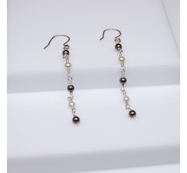 Boucles d'oreilles en Argent 925 ornés de cristaux autrichien composées de rondes nacrées 4 mm monté sur un fil en Argent 925 de 0,6 mm.