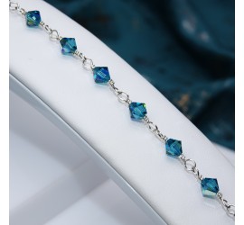 Bracelet en Argent 925 orné de cristaux autrichien créé avec des perles toupies 6 mm. Le choix de la taille des facettes du cristal, de leur orientation est directement issue de la haute joaillerie et de la taille des pierres précieuses afin de produire le plus bel effet avec la lumière qui entre et qui sort pour des reflets dignes d'une pierre précieuse.